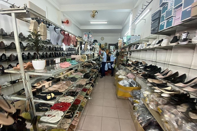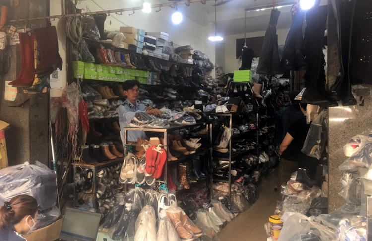 Nhiều sản phẩm giày dép có dấu hiệu giả mạo nhãn hiệu được bảo hộ tại Việt Nam được tạm giữ trong ngày 10/3. |