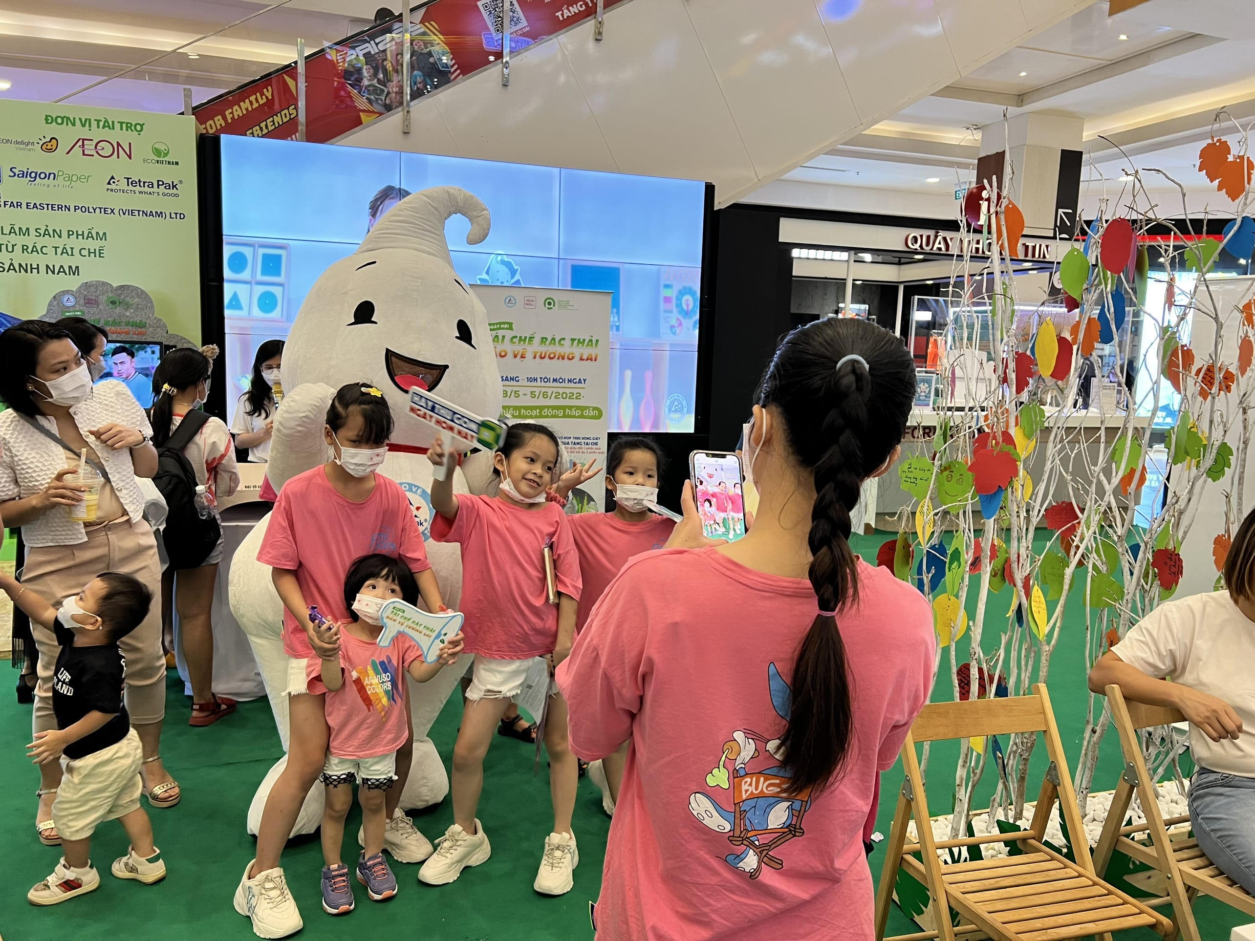 Tetra Pak cũng đặt các gian hàng với chủ đề tái chế vỏ hộp giấy trong khoảng thời gian từ 27/5 - 5/6 để khách hàng đến tham quan và trải nghiệm tại 5 Trung tâm thương mại AEON MALL tại Hà Nội, TP Hồ Chí Minh và Bình Dương.