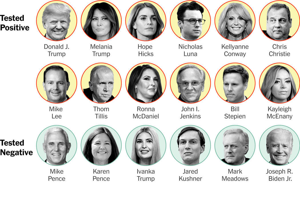 Theo tờ Thời báo New York, kết quả xét nghiệm được bà Kayleigh McEnany công bố cũng đồng nghĩa đã có 11 người có mối quan hệ với Tổng thống Trump mắc COVID-19.