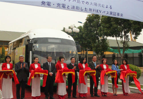 Phát biểu tại hội nghị, ông Kengo Ishida, Giám đốc Trung tâm giảm thiểu Cacbon khu vực châu Á - Cục Môi trường TP Kitakyushu cho biết, bắt đầu từ tháng 11/2015, dự án chạy thử nghiệm xe buýt điện (EV bus) chạy bằng điện năng từ năng lượng mặt trời tại đảo Cát Bà được triển khai với cơ chế đối tác Nhật Bản hỗ trợ xe, kỹ thuật lắp ráp và vận hành, Cty TNHH Thương mại Quốc Hưng chịu trách nhiệm về bến bãi, nhân lực và tổ chức vận hành. Đến nay, hoạt động đăng ký, đăng kiểm đã hoàn thiện, xe buýt đã sẵn sàng đi vào hoạt động, phục vụ người dân và du khách trên đảo.