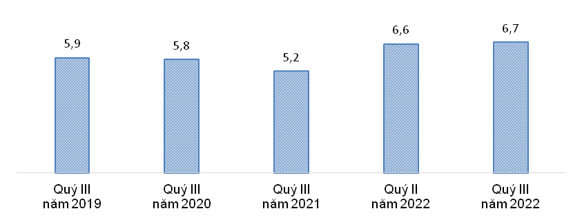 So với cùng kỳ năm 2021, khi dịch COVID-19 đang diễn biến rất phức tạp ở nhiều địa phương, thu nhập bình quân của người lao động quý III chứng kiến tốc độ tăng trưởng mạnh mẽ, tăng 30,1%, tương ứng tăng khoảng 1,6 triệu đồng.
