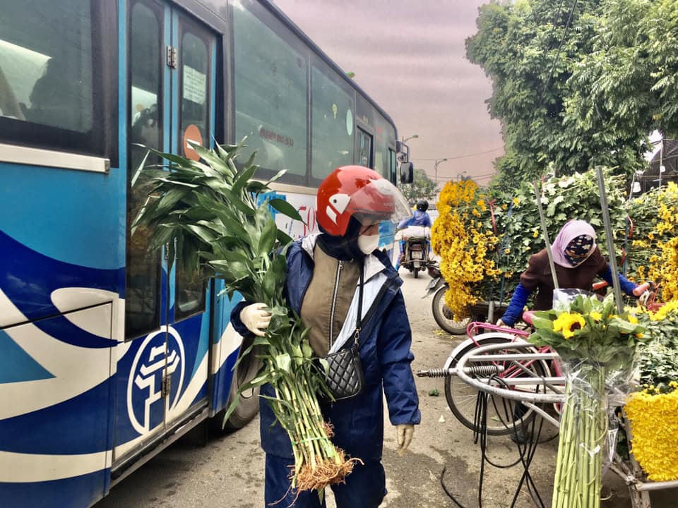 Liên tục những chiếc xe máy trở cúc từ vườn đến cung cấp hoa.