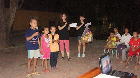 Tình nguyện viên Đào Thủy Tiên vừa giới thiệu chương trình, vừa hát cho các em nghe, trào dâng niềm cảm xúc: “Sự thiếu thốn, khó khăn đã như một điều tất yếu của cuộc sống mà bọn trẻ phải chấp nhận. Nên chỉ một vài bài hát, một ít quà bánh, các em vui suốt tuần. Thật hạnh phúc khi chúng tôi mang tới niềm vui giản dị cho các em nơi đây!”.