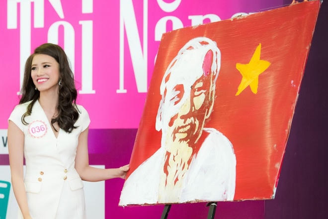 Nguyễn Huỳnh Kim Duyên gây bất ngờ với màn vẽ chân dung Hồ Chủ tịch trên nền cờ đỏ sao vàng.