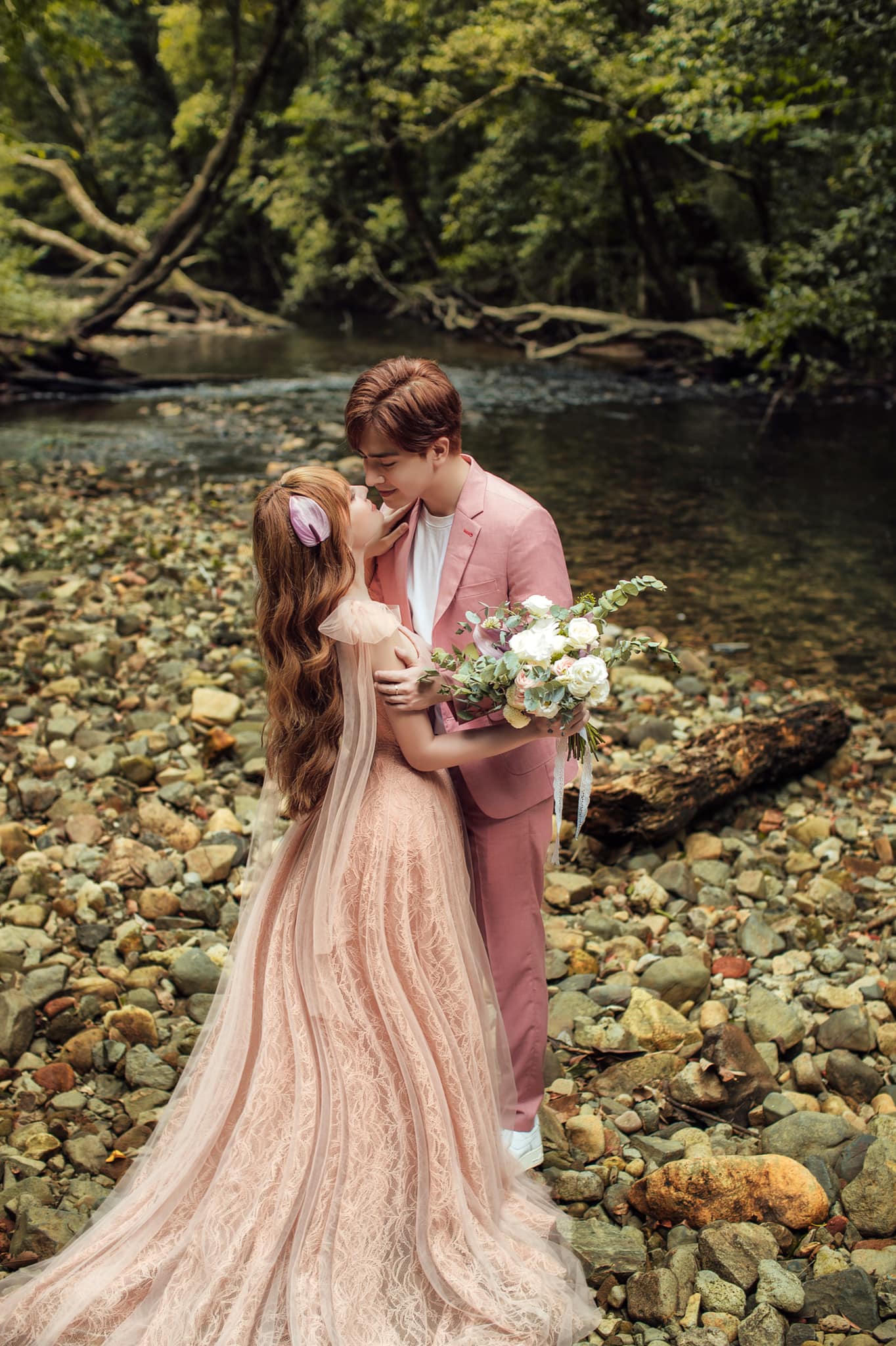 Nữ ca sĩ hạnh phúc chia sẻ: "Để được những khoảnh khắc này Kin và Thuỷ đã leo núi lội suối rất vất vả,da thì bị cháy nắng sạm da nhưng chúng ta vẫn vui vẻ để ghi lại khoảnh khắc này phải không Anh".
