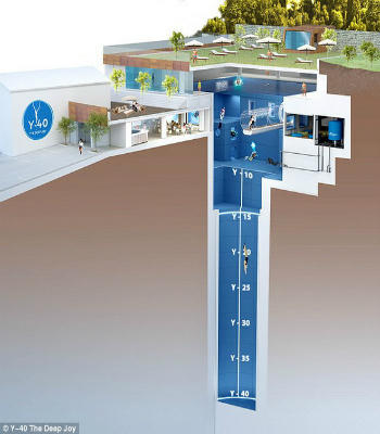 Bể bơi sâu nhất thế giới chính thức đi vào hoạt động trong tháng 6/2014. Chiều cao của bể bơi được so sánh như một tòa nhà 14 tầng, hay của 9 chiếc xe buýt 2 tầng đặt chồng lên nhau. Độ sâu của bể bơi có các mức nước khác nhau để phục vụ nhu cầu của mọi người. Độ sâu trong bể từ 1,3 m đến 10 m trước khi tụt xuống 15 m và cuối cùng là 40 m. Từ độ sâu 15m, bể như một chiếc hầm thẳng đứng khiến không ít du khách ngại ngần để lặn xuống đáy bể.