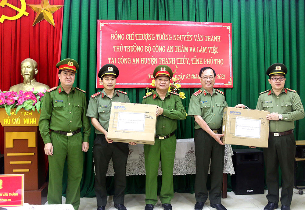 (PLVN) - Ngày 31/3, Đoàn công tác của Bộ Công an do Thượng tướng Nguyễn Văn Thành - Thứ trưởng Bộ Công an làm trưởng đoàn đã đến thăm, làm việc tại Công an huyện Thanh Thủy, tỉnh Phú Thọ.