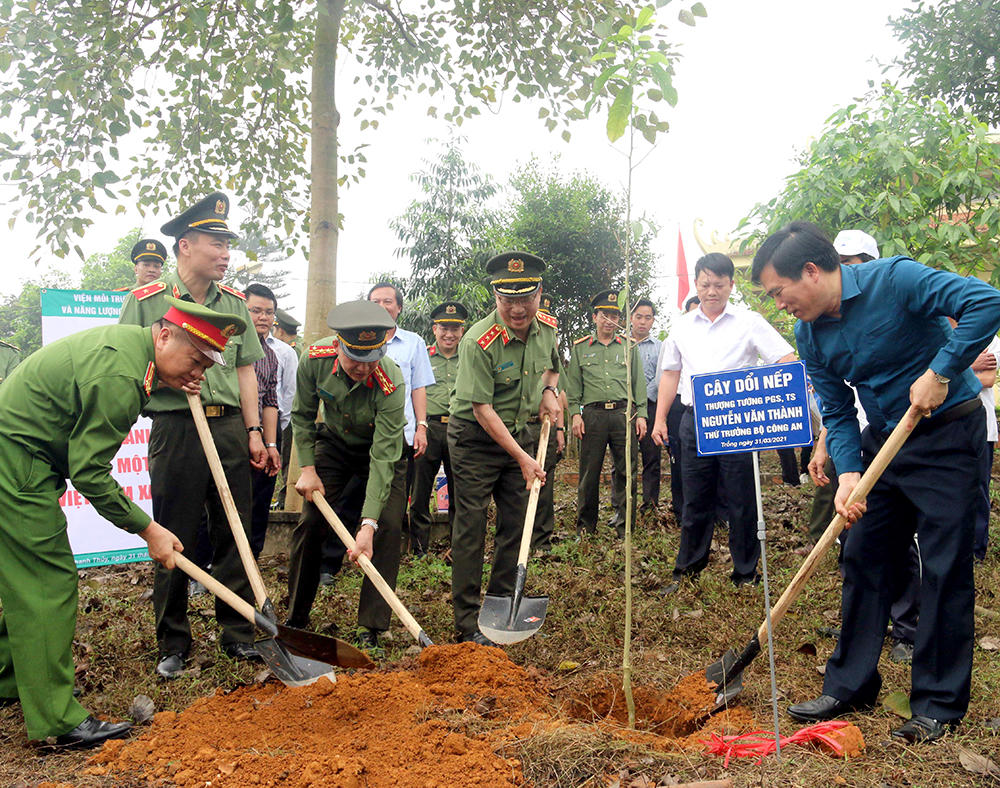 Tiếp đó, đồng chí Thứ trưởng Nguyễn Văn Thành đã đến dự Lễ phát động trồng cây do Cục Đào tạo Bộ Công an phối hợp với Viện Môi trường và năng lượng tái tạo - Liên hiệp các hội khoa học, kỹ thuật Việt Nam tổ chức tại Khu lưu niệm Bác Hồ thuộc khu đồi Bạch Thạch, xã Đào Xá, huyện Thanh Thủy.