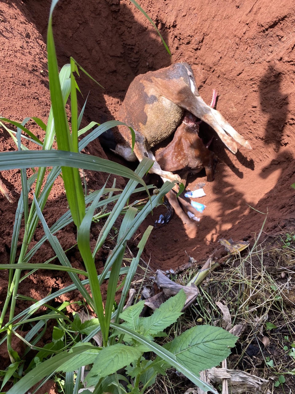 Cơ quan chức năng địa phương khử trùng, chôn cất bò bị bệnh dẫn tới chết. |