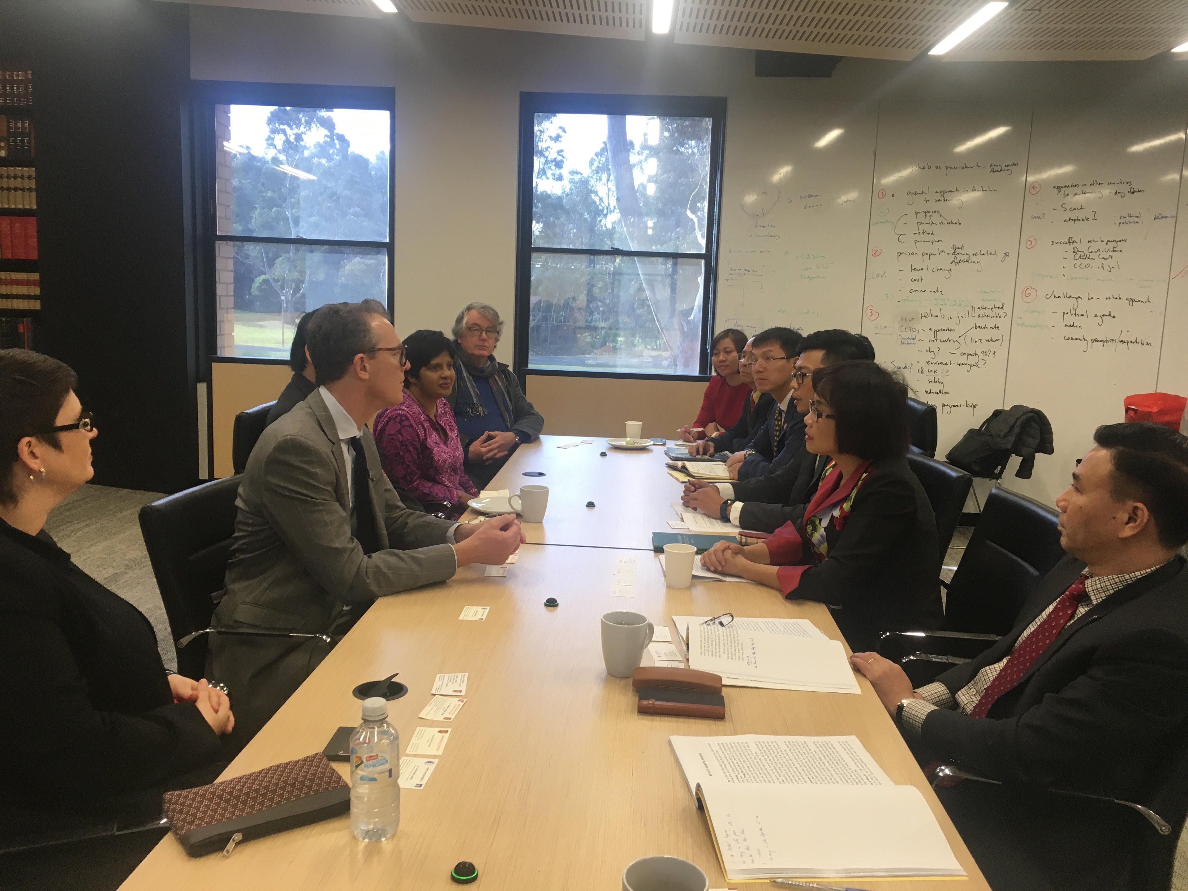 Đại diện Lãnh đạo Trường Luật Đại học Melbourne, Đại học La Trobe và Đại học New South Wales bày tỏ vui mừng được đón Thứ trưởng Đặng Hoàng Oanh cùng Đoàn công tác của Bộ Tư pháp đến thăm và làm việc. Đại diện các Trường đều đánh giá cao kết quả học tập, nghiên cứu của các lưu học sinh Việt Nam, đặc biệt là các cán bộ, công chức của Bộ Tư pháp theo học các khóa thạc sỹ, tiến sỹ luật tại Trường; đồng thời khẳng định mong muốn đẩy mạnh hơn nữa hợp tác với Trường Đại học Luật Hà Nội cũng như thiết lập quan hệ hợp tác với Học viện Tư pháp.