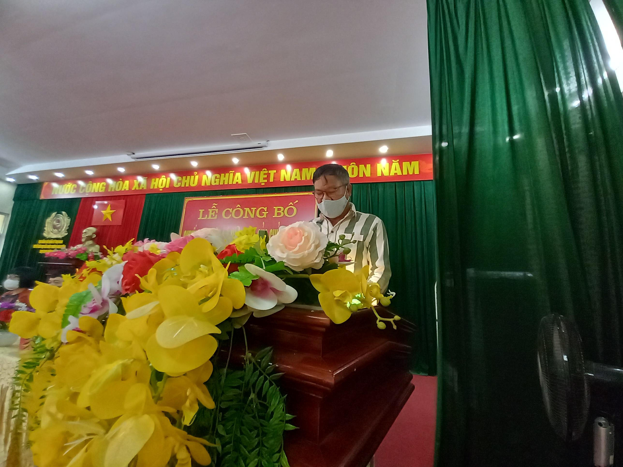 Đại tá Nguyễn Thành Công, Giám thị, Chủ tịch Hội đồng xét đề nghị đặc xá Trại giam Hoàng Tiến công bố Quyết định đặc xá năm 2021 của Chủ tịch nước. |