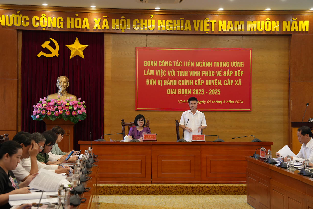 Tỉnh Vĩnh Phúc đề nghị Đoàn Khảo sát liên ngành Trung ương về sắp xếp đơn vị hành chính cấp huyện, cấp xã giai đoạn 2023 - 2025 quan tâm, tạo điều kiện báo cáo các cấp có thẩm quyền ban hành Nghị quyết sắp xếp ĐVHC cấp xã tỉnh Vĩnh Phúc giai đoạn 2023 - 2025.