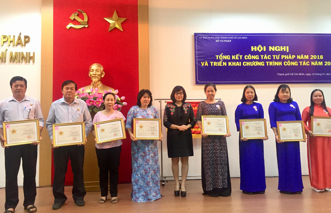 Với những thành tích đã được, trong năm 2018, Sở Tư pháp TPHCM là một trong 23 địa phương của cả nước được tặng “Cờ thi đua Ngành Tư pháp”.