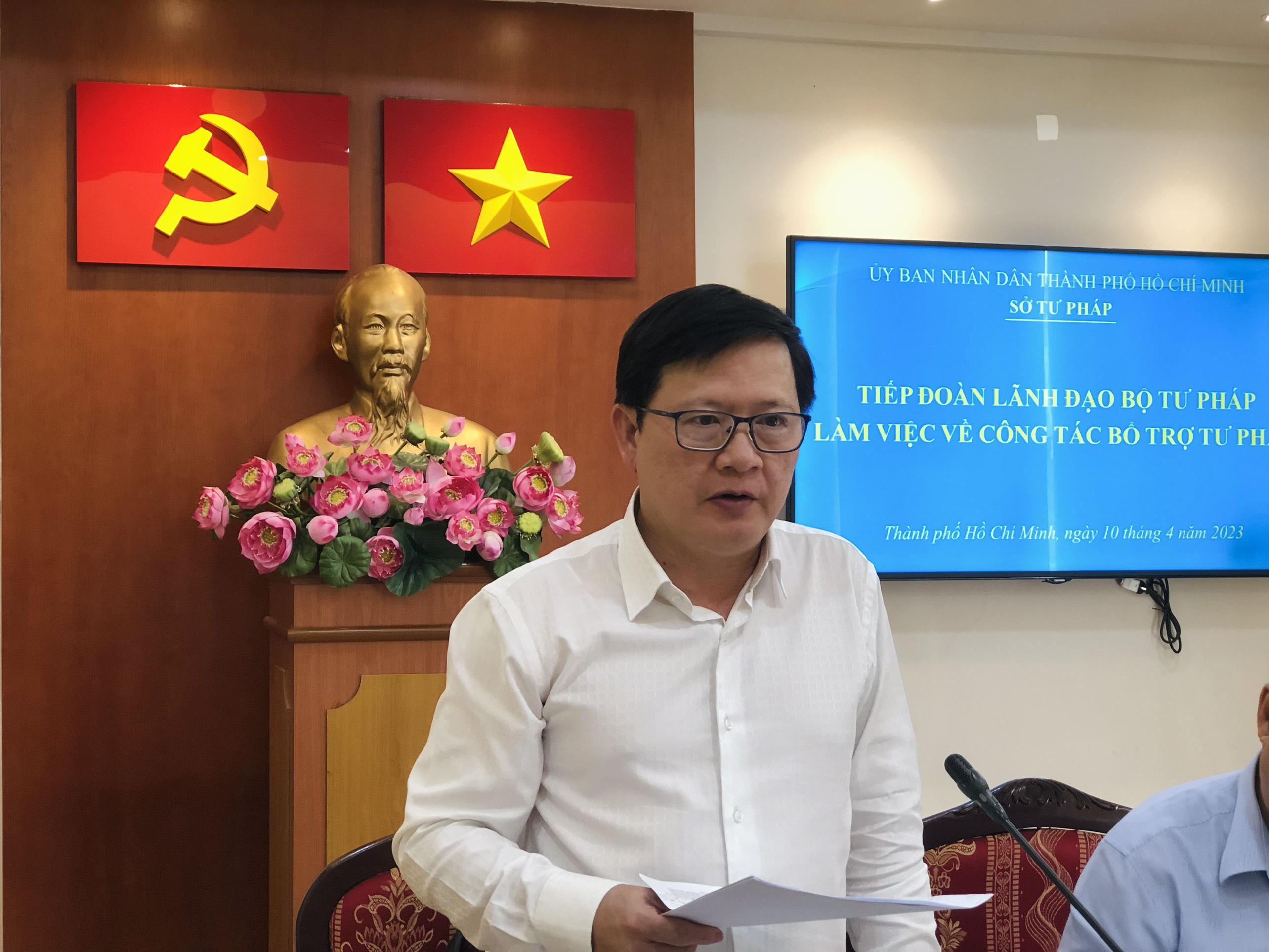 Tại buổi làm việc đại diện Sở Tư pháp TPHCM đã báo cáo với Thứ trưởng Mai Lương Khôi những kết quả đạt được trong công tác quản lý nhà nước trong lĩnh vực bổ trợ tư pháp năm 2022 và những tháng đầu năm 2023.