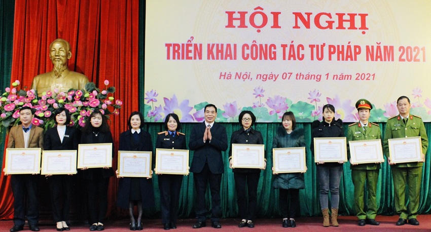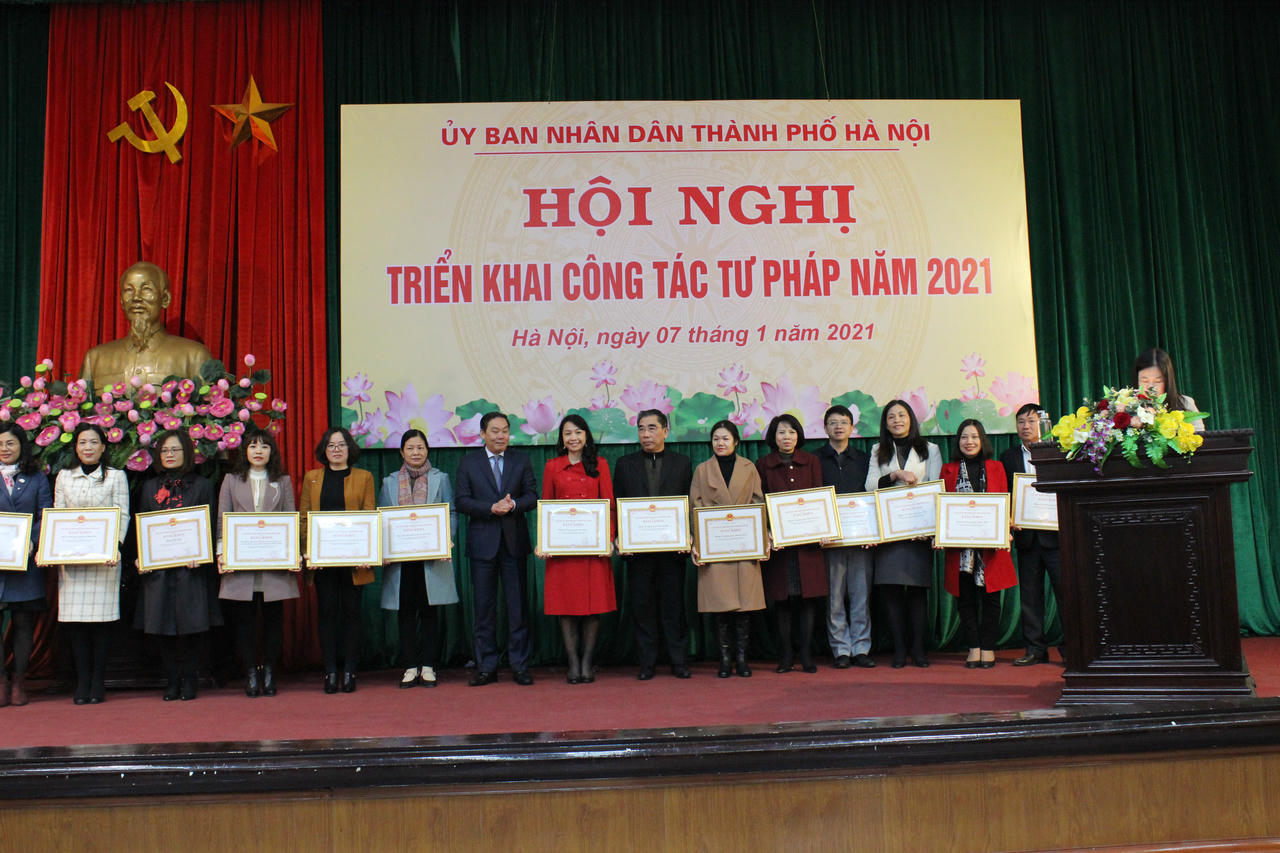 Hội nghị cũng được nghe một số tham luận của các Sở, ban, ngành của Thành phố, các đơn vị trực thuộc Sở, các Phòng Tư pháp quận huyện; tiến hành công tác khen thưởng và phát động phong trào thi đua 2021.