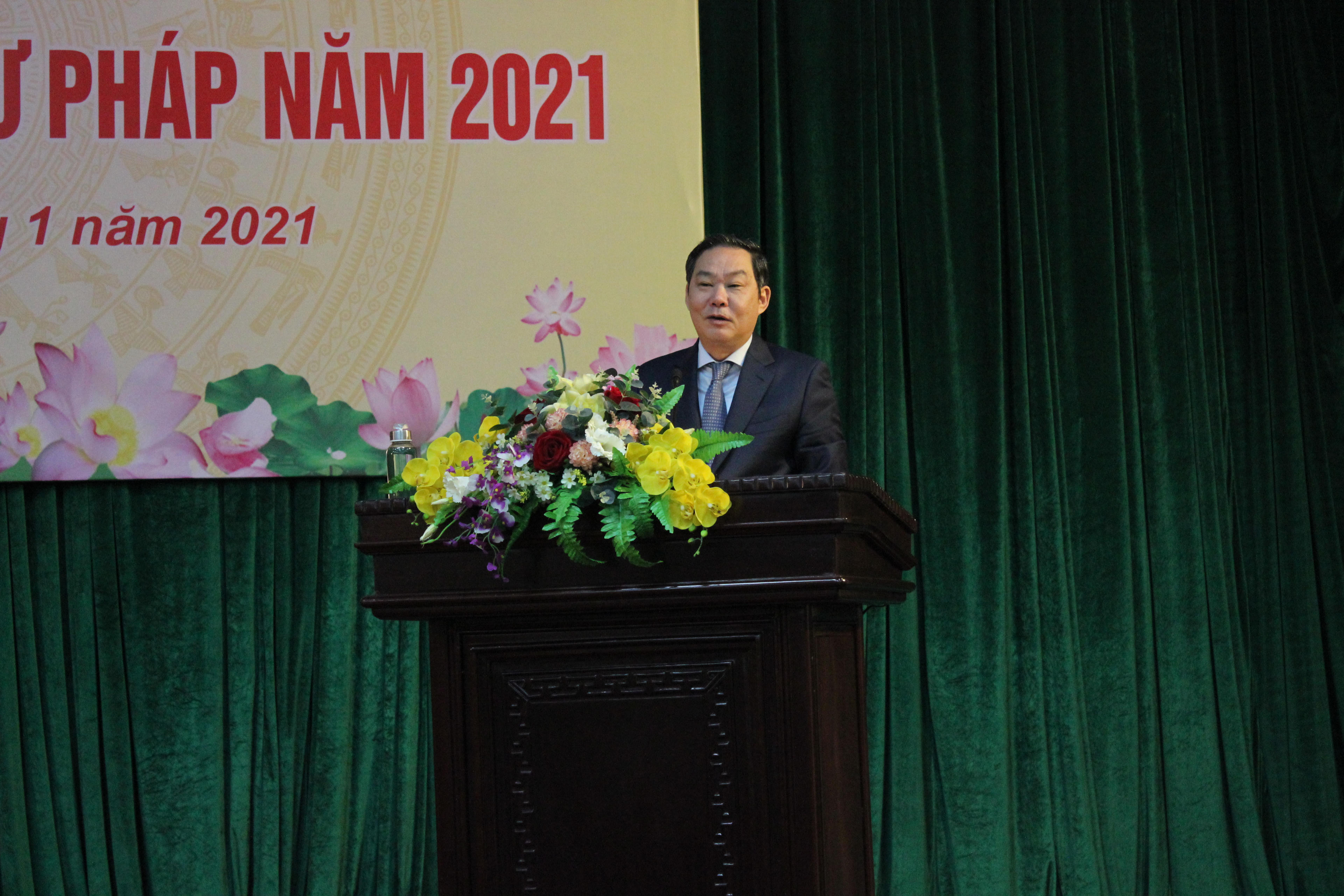 Năm 2021 Bộ ngành Tư pháp tiếp tục được giao thêm nhiệm vụ nặng nề, là năm đầu tiên Thành phố triển khai kế hoạch phát triển Kinh tế xã hội 5 năm và Nghị quyết Đại hội Đảng bộ TP, để thực hiện tốt nhiệm vụ, Thứ trưởng lưu ý, Tư pháp Hà Nội cần bám sát nhiệm vụ phát triển kinh tế xã hội TP., tăng cường tham mưu cho cấp ủy, chính quyền địa phương; đặc biệt là những vấn đề về pháp lý.