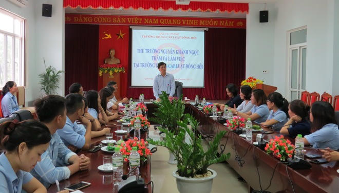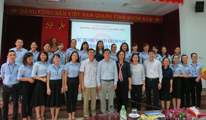 Tại Trường Trung cấp Luật Đồng Hới, Thứ trưởng Nguyễn Khánh Ngọc đã có buổi gặp gỡ, trò chuyện cùng tập thể Ban giám hiệu nhà trường, các cán bộ giáo viên và học sinh tại đây.