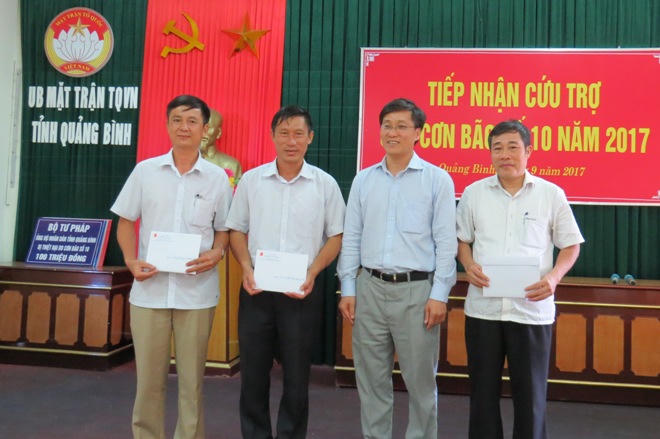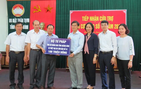 Tại trụ sở Ủy ban MTTQ Việt Nam tỉnh Quảng Bình, Thứ trưởng Nguyễn Khánh Ngọc đã trao số tiền 100 triệu đồng của Bộ Tư pháp ủng hộ nhân dân tỉnh Quảng Bình bị thiệt hại sau bão và chia sẻ với những thiệt hại, khó khăn mà tỉnh đang trải qua sau bão số 10; đồng thời, đánh giá cao công tác chỉ đạo quyết liệt, kịp thời trong vấn đề khắc phục thiệt hại do thiên tai gây ra.