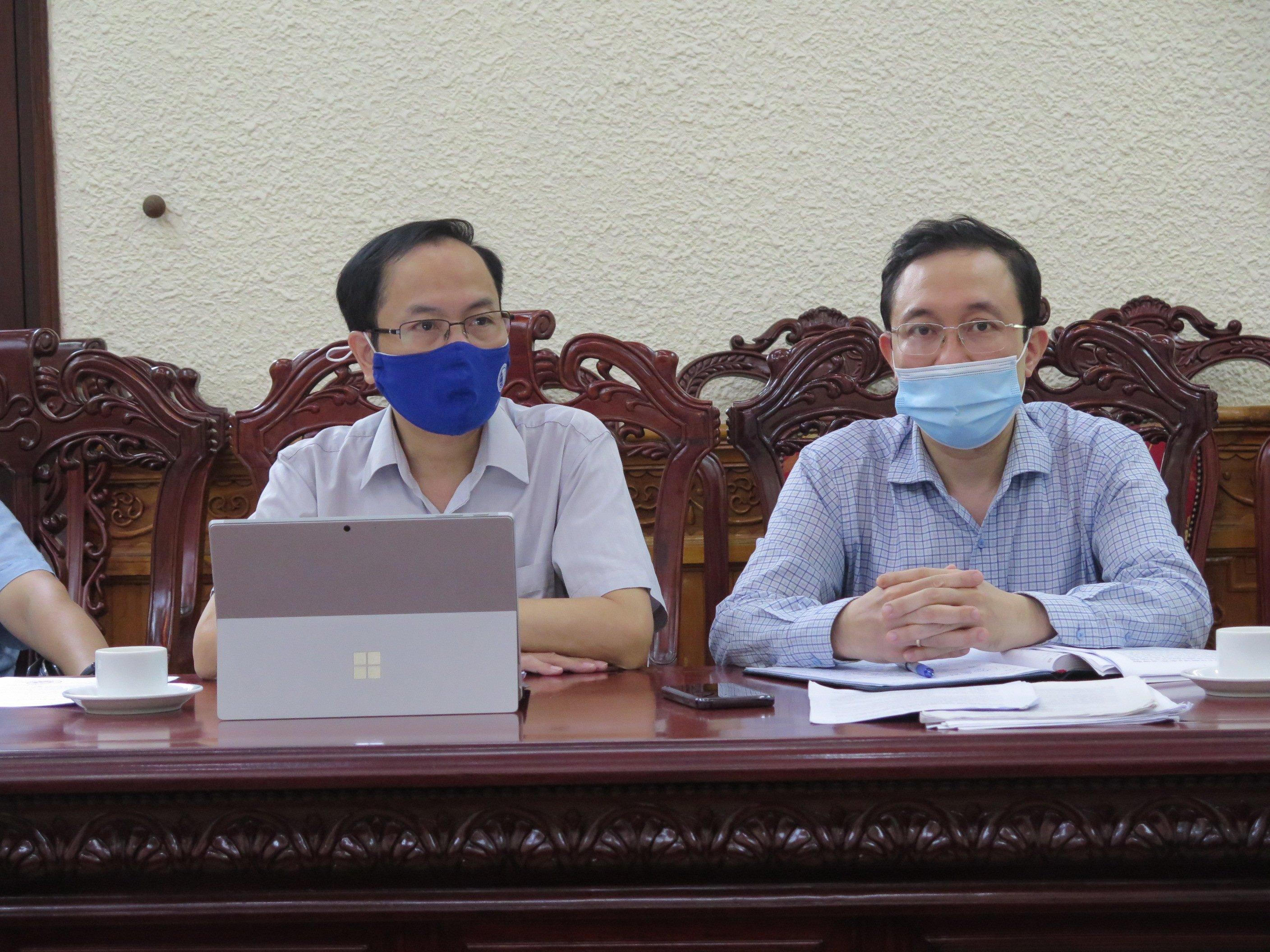 | Phó Hiệu trưởng Trường Đại học Luật Hà Nội Lê Đình Nghị và Phó Vụ trưởng Vụ PBGDPL Phan Hồng Nguyên tại cuộc họp. |