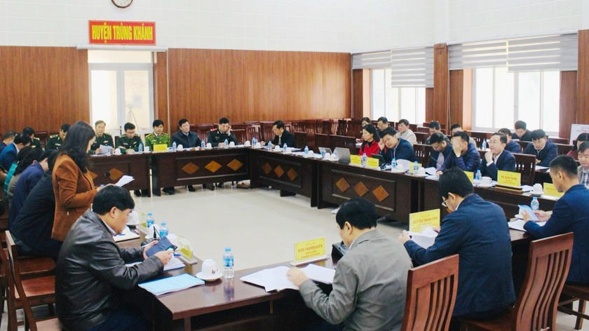 Làm việc với Đoàn kiểm tra của Hội đồng phối hợp phổ biến, giáo dục pháp luật Trung ương (Hội đồng phối hợp PBGDPL Trung ương) có Tỉnh ủy viên, Giám đốc Sở Tư pháp Bàn Thanh Hiền; Tỉnh ủy viên, Bí Thư huyện ủy Nguyễn Anh Quế; Phó Bí thư huyện ủy, Chủ tịch UBND huyện Nông Văn Bộ; Huyện ủy viên, Phó Chủ tịch UBND huyện Chu Thị Vinh cùng lãnh đạo, đại diện nhiều đơn vị thuộc huyện Trùng Khánh.