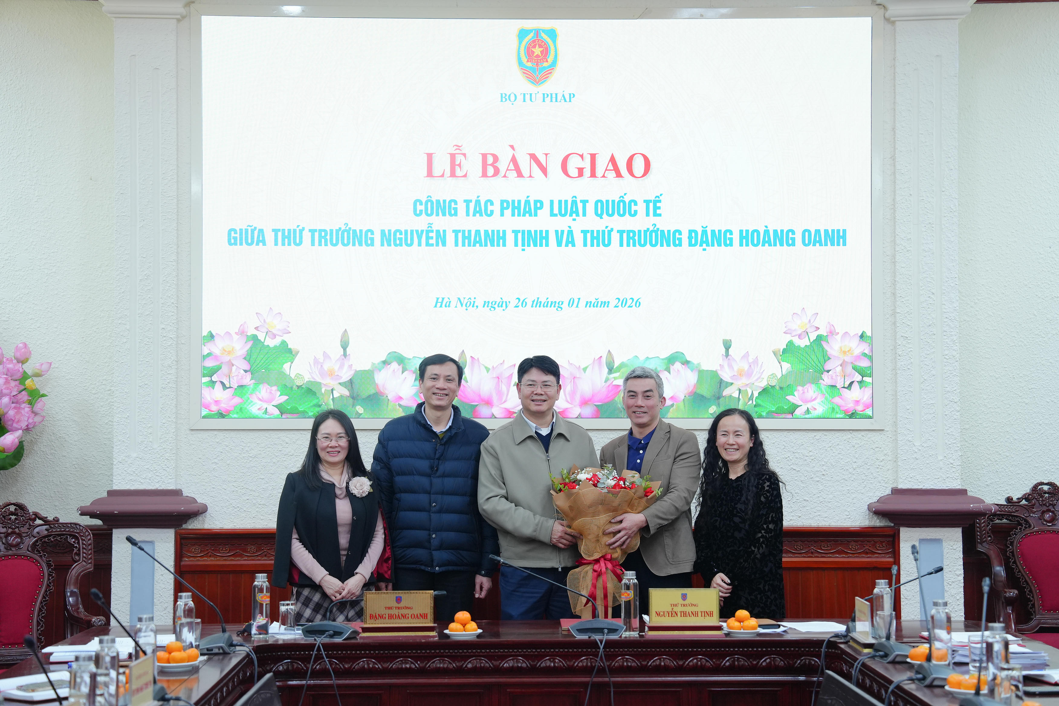 Ngày 26/1, Bộ Tư pháp đã tổ chức Lễ bàn giao công tác pháp luật quốc tế giữa Thứ trưởng Nguyễn Thanh Tịnh và Thứ trưởng Đặng Hoàng Oanh.