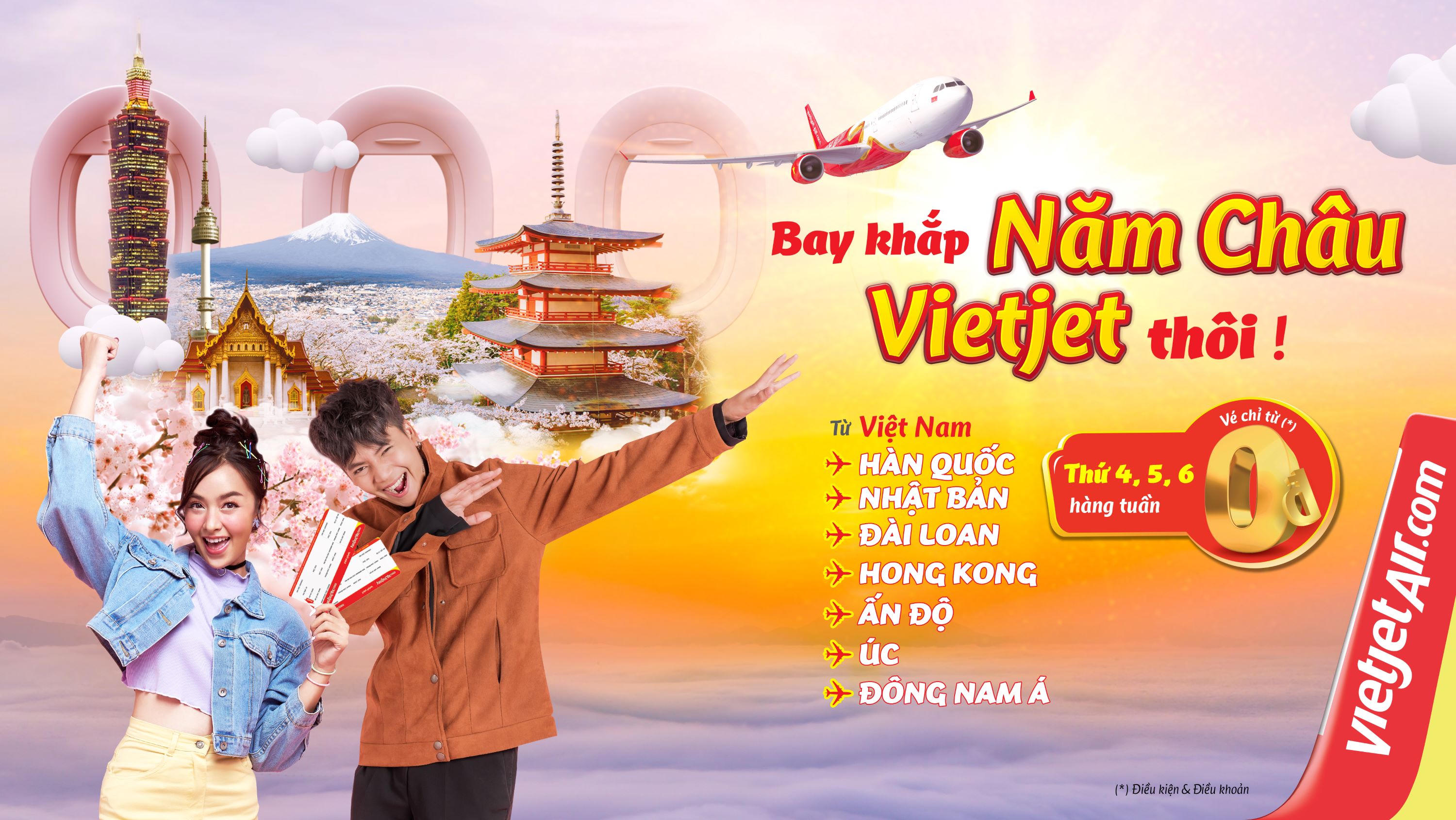 Theo đó, từ nay đến 31/12/2023, vào 0h00 đến 23h59 thứ Tư, thứ Năm và thứ Sáu hàng tuần, khách hàng có thể săn vé từ 0 đồng (Chưa bao gồm thuế, phí. Trừ Lễ Tết, cao điểm hè và tuân theo đặc điểm mùa vụ từng thị trường) tại www.vietjetair.com hoặc ứng dụng Vietjet Air.