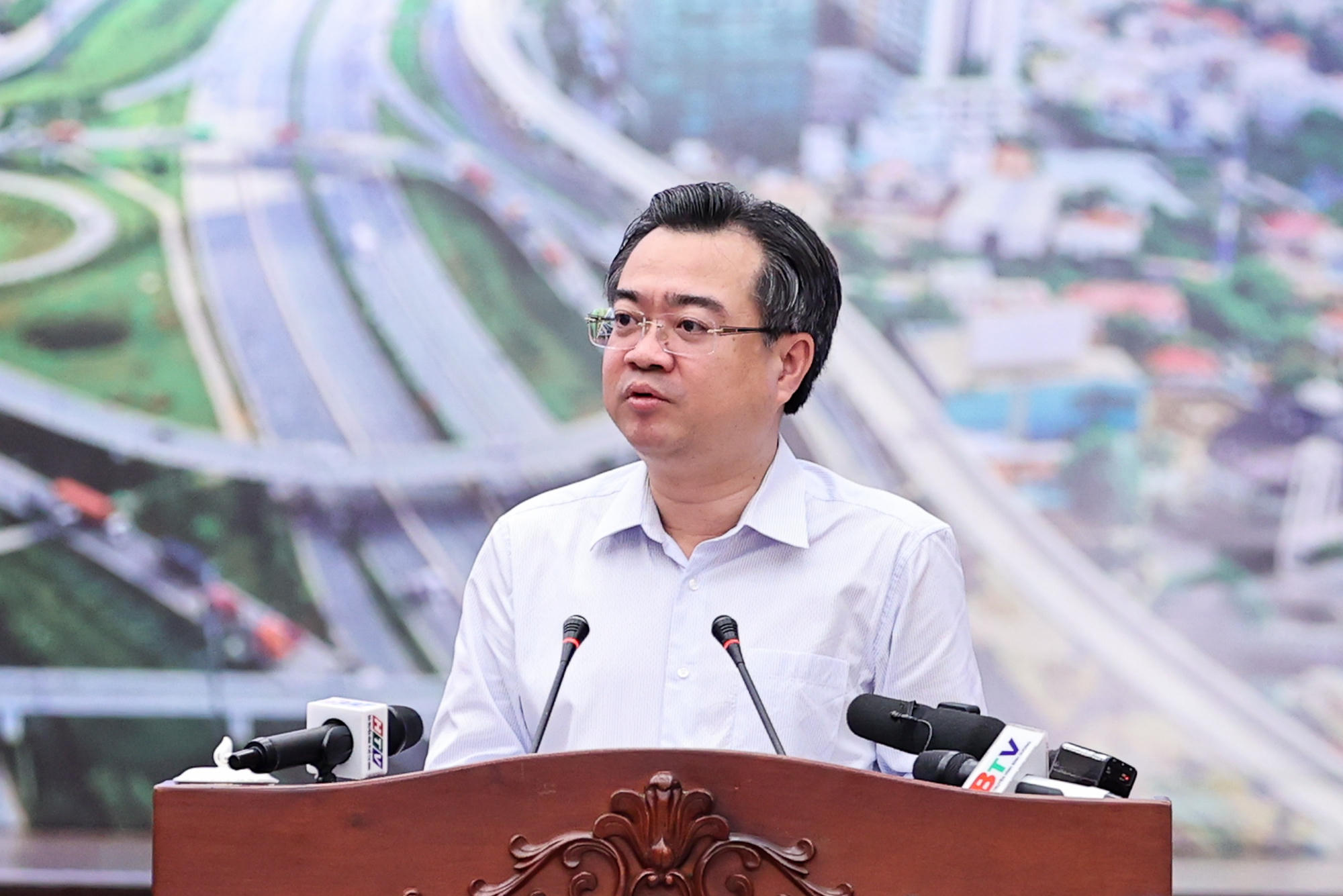 Ủy viên Bộ Chính trị, Bí thư Thành ủy TPHCM Nguyễn Văn Nên phát biểu tại Hội nghị - Ảnh: VGP/Nhật Bắc