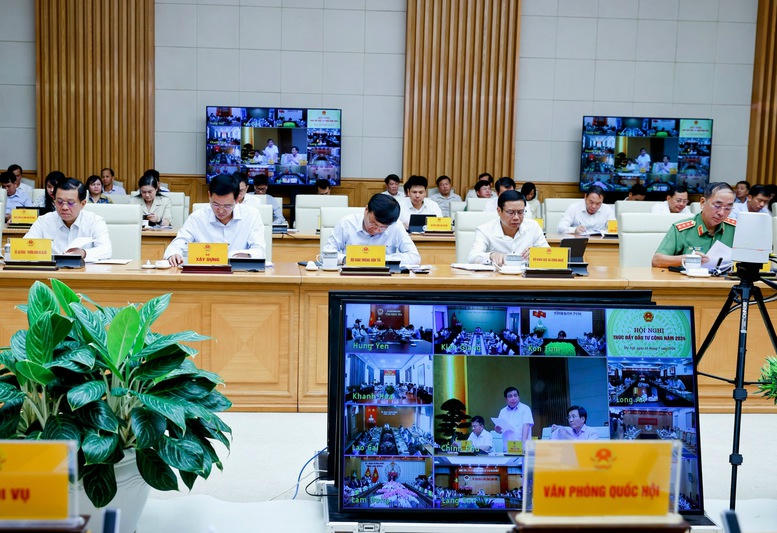 Sáng 16/7, Thủ tướng Phạm Minh Chính chủ trì Hội nghị trực tuyến toàn quốc của Thường trực Chính phủ về thúc đẩy đầu tư công năm 2024. Hội nghị được kết nối trực tuyến từ trụ sở Chính phủ tới trụ sở UBND các tỉnh, thành phố trực thuộc Trung ương.