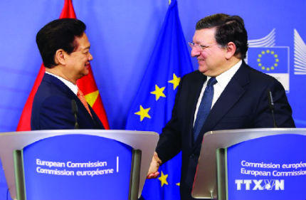 Trước đó, Thủ tướng Nguyễn Tấn Dũng đã hội đàm với Chủ tịch Ủy ban Châu Âu (EC) Manuel Barroso và gặp Chủ tịch Hội đồng châu Âu Herman Van Rompuy. Thủ tướng Nguyễn Tấn Dũng mong muốn hai bên sớm hoàn tất phê chuẩn Hiệp định khung Đối tác và Hợp tác toàn diện (PCA) và ký chính thức Hiệp định Thương mại tự do Việt Nam-EU (EVFTA) vào thời gian sớm nhất; đề nghị EU sớm công nhận Quy chế kinh tế thị trường cho Việt Nam vào thời điểm hai bên kết thúc đàm phán.