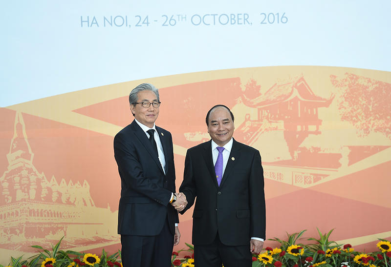| Thủ tướng Nguyễn Xuân Phúc đón Tổng Thư ký ASEAN Lê Lương Minh. Ảnh: VGP/Quang Hiếu
