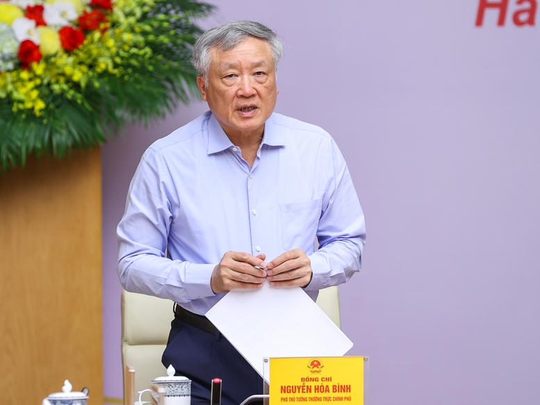 Phó Thủ tướng Nguyễn Hòa Bình phát biểu tại cuộc họp - Ảnh: VGP/Nhật Bắc