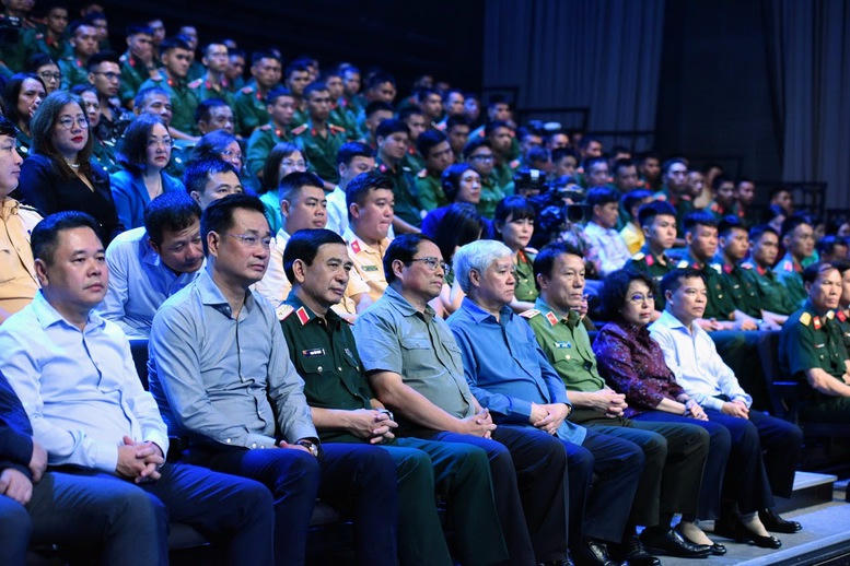 Thông qua những câu chuyện chân thực, xúc động từ thực tiễn ứng phó, khắc phục hậu quả bão lũ, thiên tai những ngày qua, cùng với những tiết mục nghệ thuật đầy cảm xúc, chương trình gửi đi thông điệp về những điểm tựa trong bão lũ, người Việt Nam ở mỗi vị trí của mình đều có thể làm một điểm tựa cho đồng bào, cho đất nước trong những thời khắc khó khăn - Ảnh: VGP/Nhật Bắc