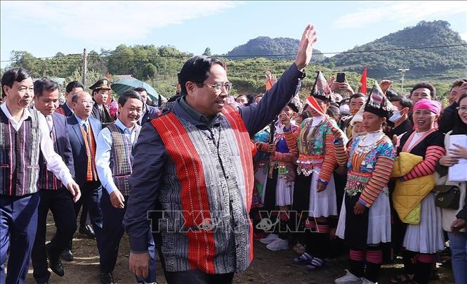 Thủ tướng Phạm Minh Chính với đồng bào các dân tộc tỉnh Lai Châu. (ảnh: TTXVN) |