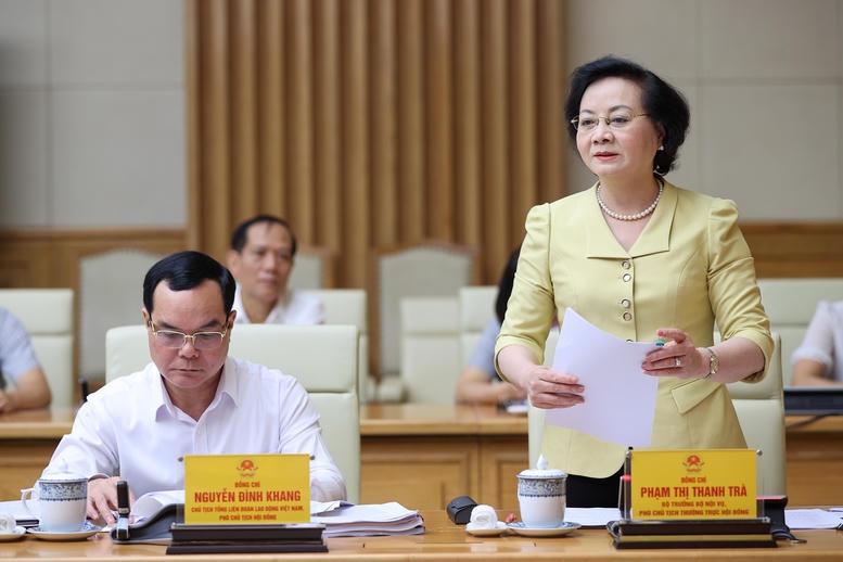 Bộ trưởng Bộ Nội vụ Phạm Thị Thanh Trà, Phó Chủ tịch Thường trực Hội đồng báo cáo tại Phiên họp - Ảnh: VGP/Nhật Bắc