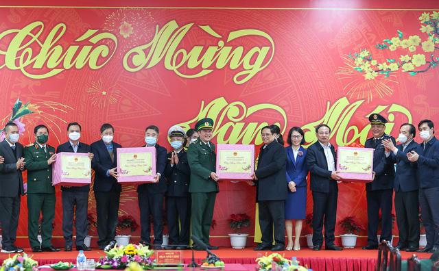 Trước đó, đoàn đã tới thăm, chúc Tết, tặng quà các lực lượng chức năng đang làm việc tại cửa khẩu quốc tế Móng Cái. Tại đây, Thủ tướng đã nghe lãnh đạo thành phố Móng Cái báo cáo về tình hình phòng, chống dịch, phát triển kinh tế - xã hội, nghe các lực lượng biên phòng, công an, hải quan, kiểm dịch, Ban quản lý cửa khẩu… báo cáo tình hình thực hiện nhiệm vụ được giao.