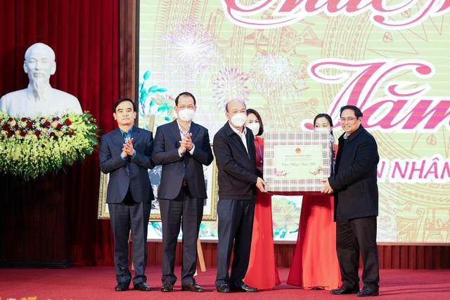 Ân cần thăm hỏi đời sống, sức khỏe, công việc và gửi lời chúc sức khỏe, hạnh phúc, thành công tới công nhân lao động ngành than, Thủ tướng Phạm Minh Chính nêu rõ, trong năm 2021 với những khó khăn, thách thức chưa từng có vừa qua, dưới sự lãnh đạo của Đảng, trực tiếp và thường xuyên là Trung ương, Bộ Chính trị, Ban Bí thư, đứng đầu là Tổng Bí thư Nguyễn Phú Trọng, sự đồng hành, ủng hộ, giám sát của Quốc hội, sự chỉ đạo, điều hành quyết liệt của Chính phủ, sự vào cuộc cả hệ thống chính trị, sự ủng hộ, chia sẻ và tham gia tích cực của các tầng lớp nhân dân, cộng đồng doanh nghiệp, chúng ta đã thực hiện "đa mục tiêu", đất nước ta đạt được nhiều kết quả rất đáng trân trọng trên nhiều lĩnh vực.