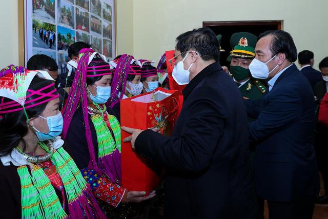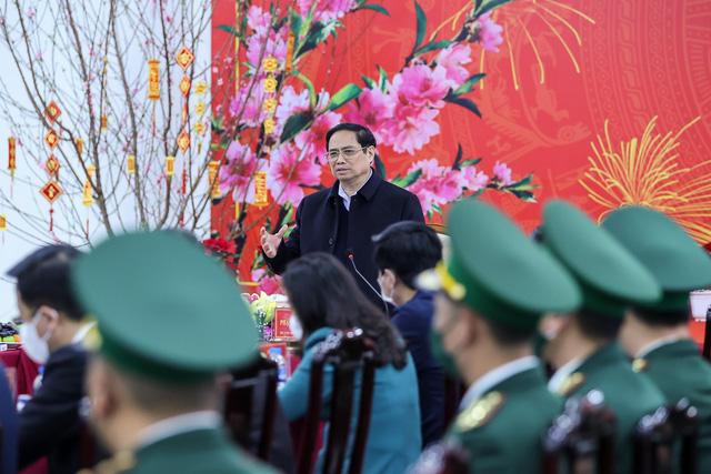 Ân cần thăm hỏi đời sống, sinh hoạt của bà con, Thủ tướng mong muốn đồng bào tiếp tục thực hiện tốt chủ trương, chính sách, pháp luật của Đảng và Nhà nước, phòng, chống dịch COVID-19 hiệu quả, góp phần xây dựng đường biên giới hòa bình, hữu nghị và phát triển. Thủ tướng đề nghị cấp ủy, chính quyền địa phương quan tâm, chăm lo Tết cho đồng bào và cán bộ, chiến sĩ biên phòng, để mọi người đều có Tết an toàn, tươi vui, hạnh phúc, tiết kiệm, tình nghĩa…
