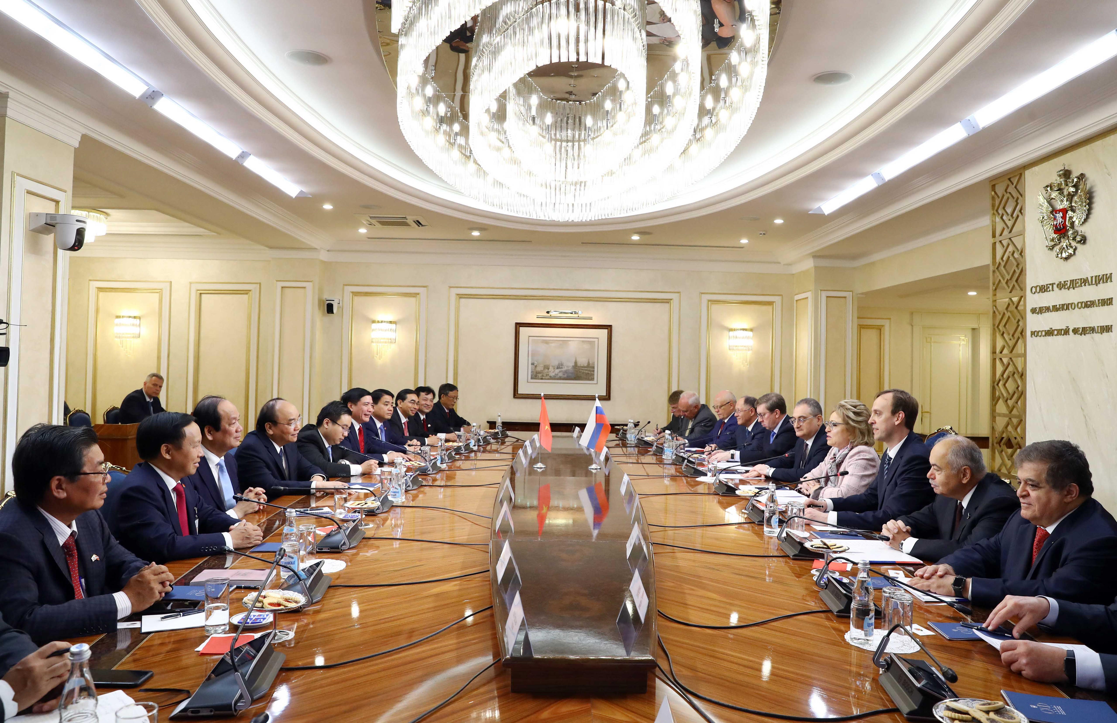 Nhân dịp này, Thủ tướng Chính phủ Nguyễn Xuân Phúc đã chuyển lời chào và thăm hỏi của Chủ tịch Quốc hội Nguyễn Thị Kim Ngân tới Chủ tịch Hội đồng Liên bangV. Matviyenko.
