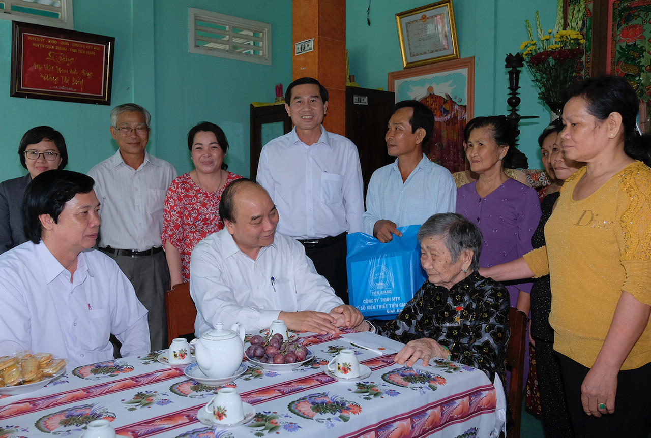 Cùng ngày, Thủ tướng Nguyễn Xuân Phúc đã đến thăm, tặng quà một số gia đình người có công với cách mạng ở tỉnh Tiền Giang./.