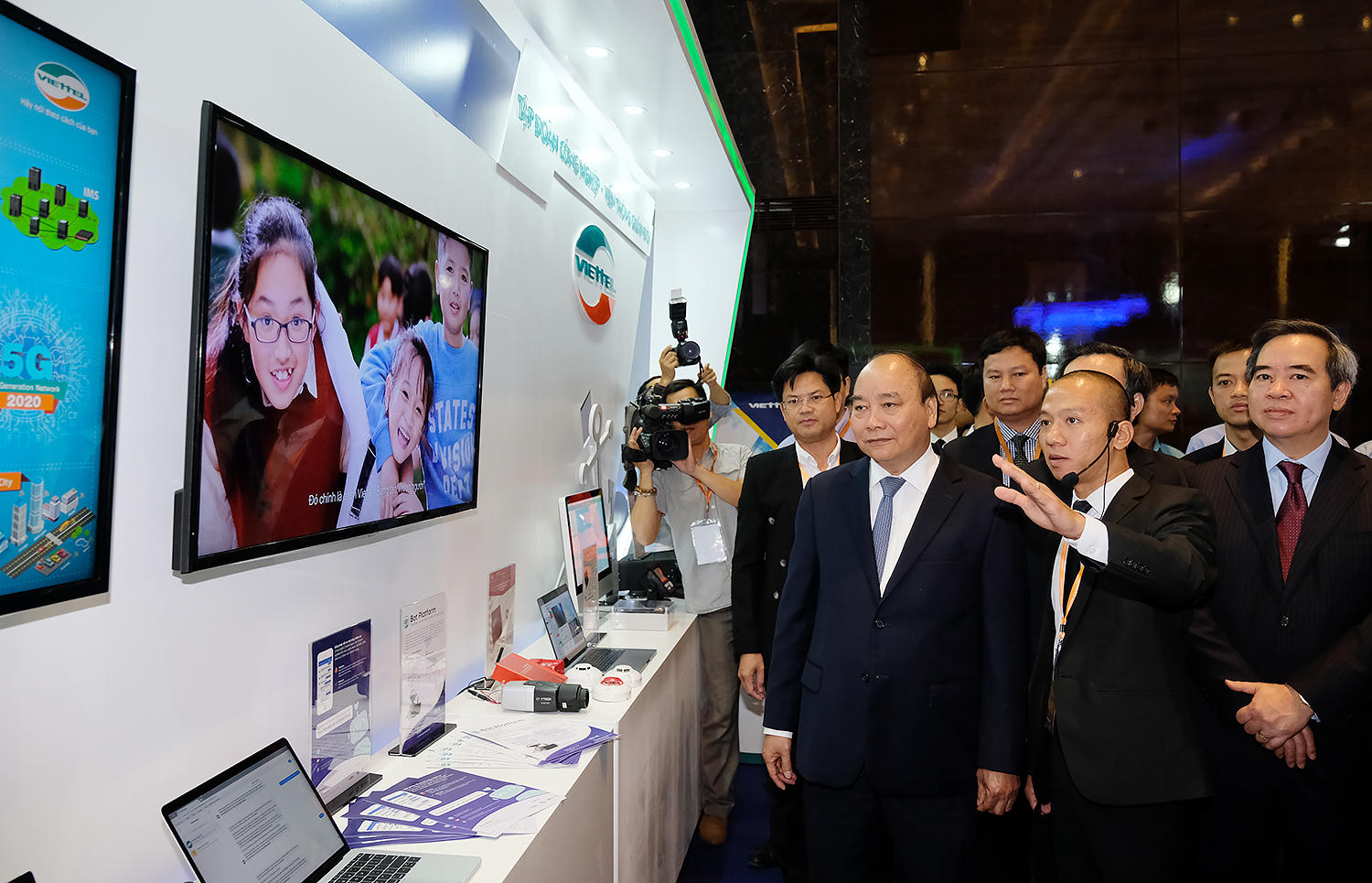 | Thủ tướng thăm gian hàng trưng bày sản phẩm của Tập đoàn Viettel. Ảnh: VGP/Quang Hiếu |