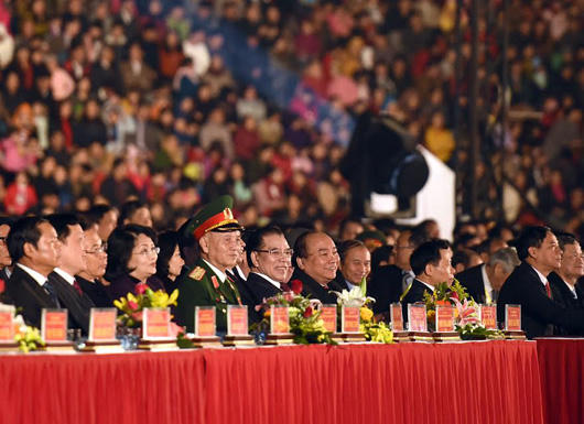 | Thủ tướng Nguyễn Xuân Phúc, nguyên Tổng Bí thư Nông Đức Mạnh và lãnh đạo các ban, bộ, ngành, đoàn thể, cơ quan Trung ương và các địa phương đã tham dự buổi lễ. |
