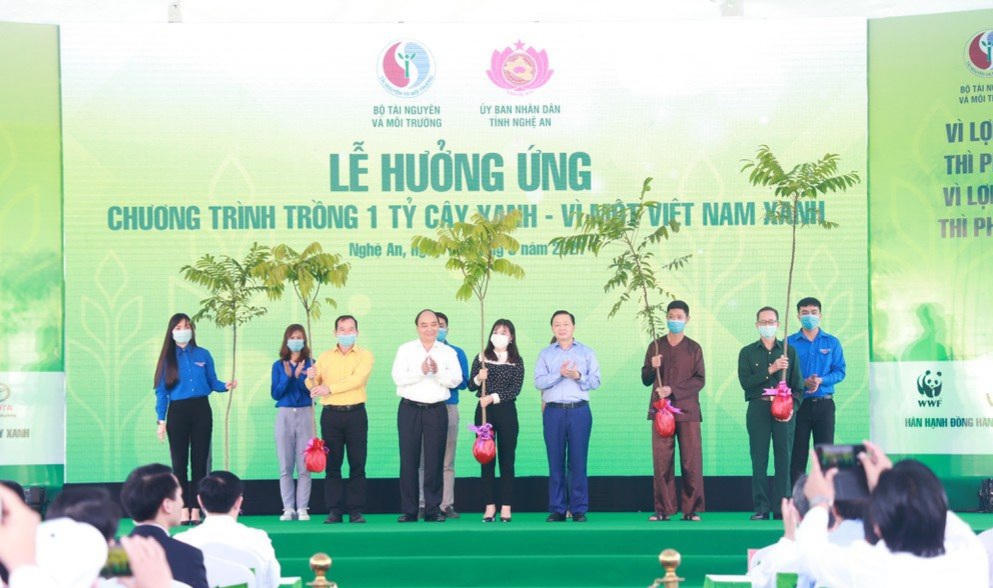 Cũng trong sáng nay, Thủ tướng Nguyễn Xuân Phúc dự Lễ hưởng ứng “Chương trình trồng 1 tỷ cây xanh - Vì một Việt Nam xanh” tại Khu Di tích lịch sử Quốc gia Truông Bồn, huyện Đô Lương (Nghệ An). Đây là buổi lễ do Bộ TN&MT phối hợp với UBND tỉnh Nghệ An tổ chức.