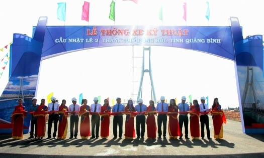 Mừng kỷ niệm 72 năm Cách mạng Tháng Tám và Quốc khánh 2/9, ngày 25/8, Sở Giao thông vận tải tỉnh Quảng Bình tổ chức lễ thông xe kỹ thuật cầu Nhật Lệ 2, bắc qua sông Nhật Lệ, TP. Đồng Hới (Quảng Bình).