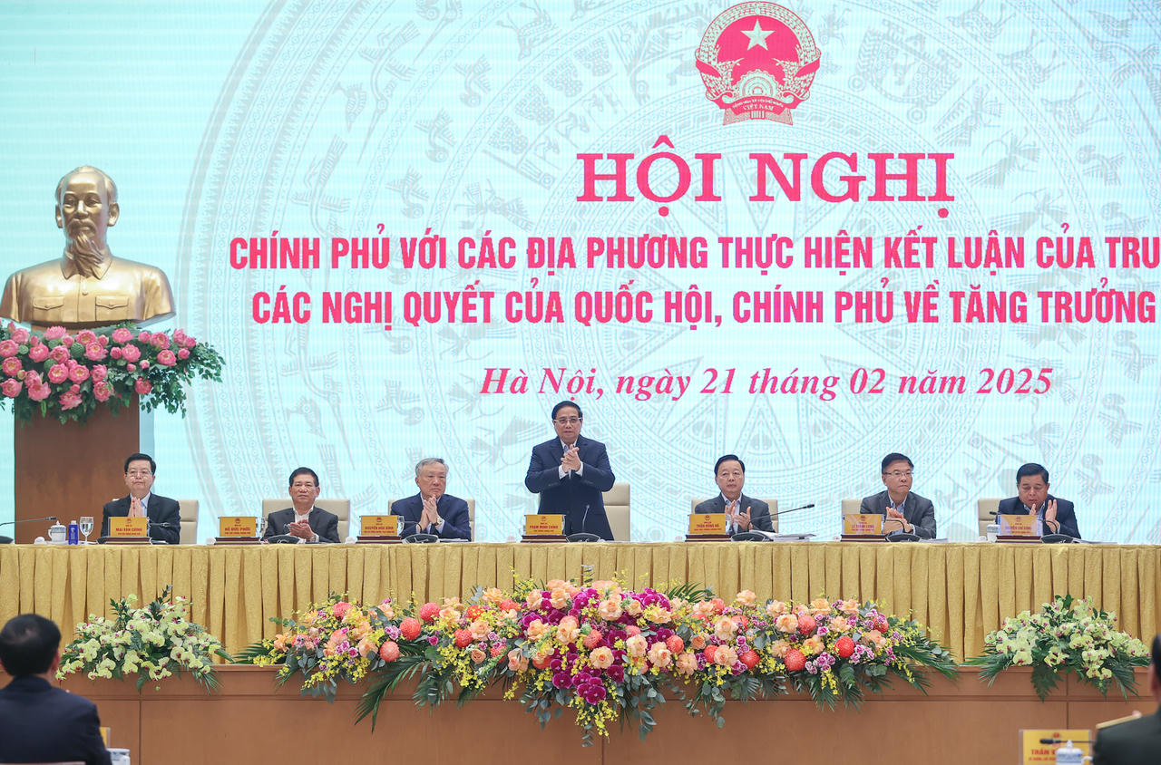 Phát biểu kết luận, Thủ tướng Phạm Minh Chính nêu rõ, hội nghị được tổ chức để thực hiện kết luận của Trung ương, các nghị quyết của Quốc hội và Chính phủ về phấn đấu tăng trưởng GDP đạt ít nhất 8% trong năm 2025, với tinh thần "Đảng đã chỉ đạo, Chính phủ thống nhất, Quốc hội đồng tình, nhân dân ủng hộ, Tổ quốc mong đợi thì chỉ bàn làm, không bàn lùi".