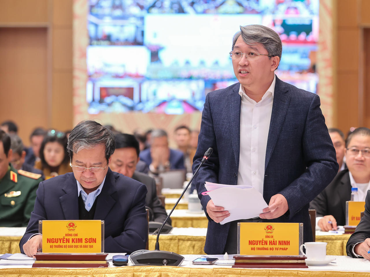 Bộ trưởng Bộ Tư pháp Nguyễn Hải Ninh phát biểu tại hội nghị - Ảnh: VGP/Nhật Bắc |