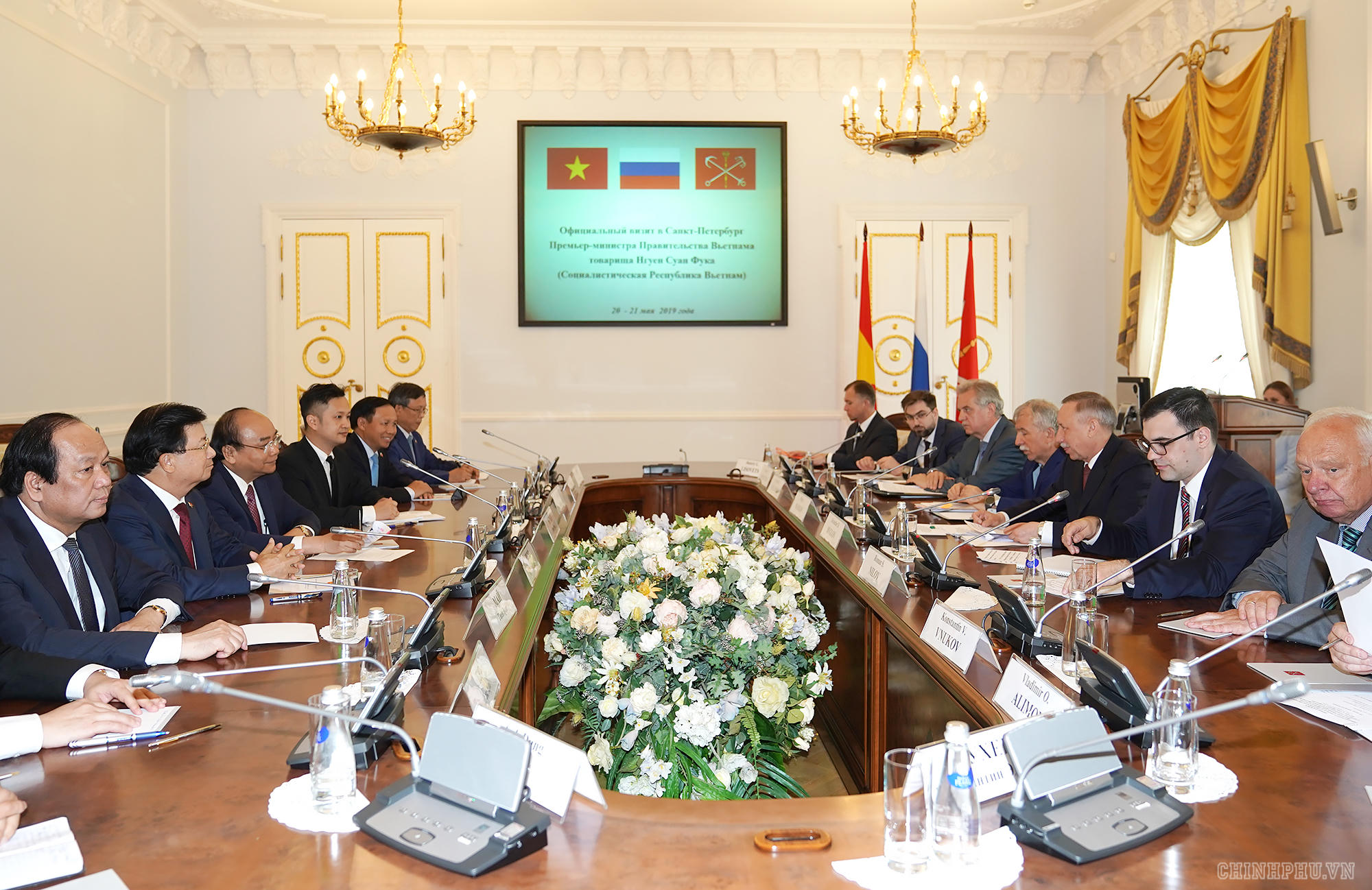 Thủ tướng đánh giá cao quan hệ giữa Saint Petersburg và các địa phương Việt Nam ngày càng được mở rộng, trao đổi đoàn các cấp được duy trì thường xuyên, có nhiều dự án hợp tác trên các lĩnh vực phù hợp với nhu cầu phát triển của hai bên; khẳng định Chính phủ Việt Nam luôn ủng hộ các địa phương hai nước đẩy mạnh hợp tác với nhau trên tất cả các lĩnh vực.