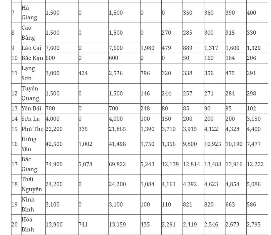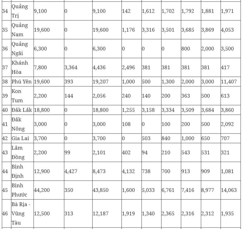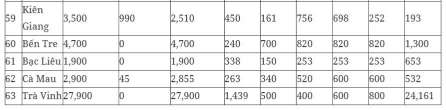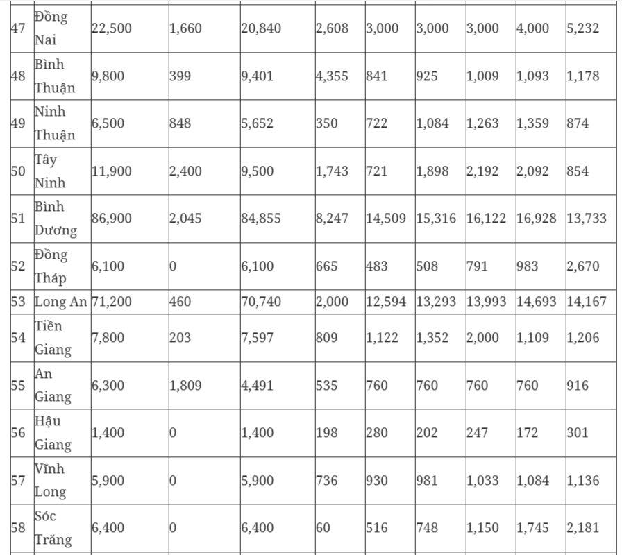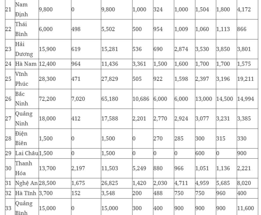 Chỉ tiêu cụ thể đối với từng địa phương như sau: