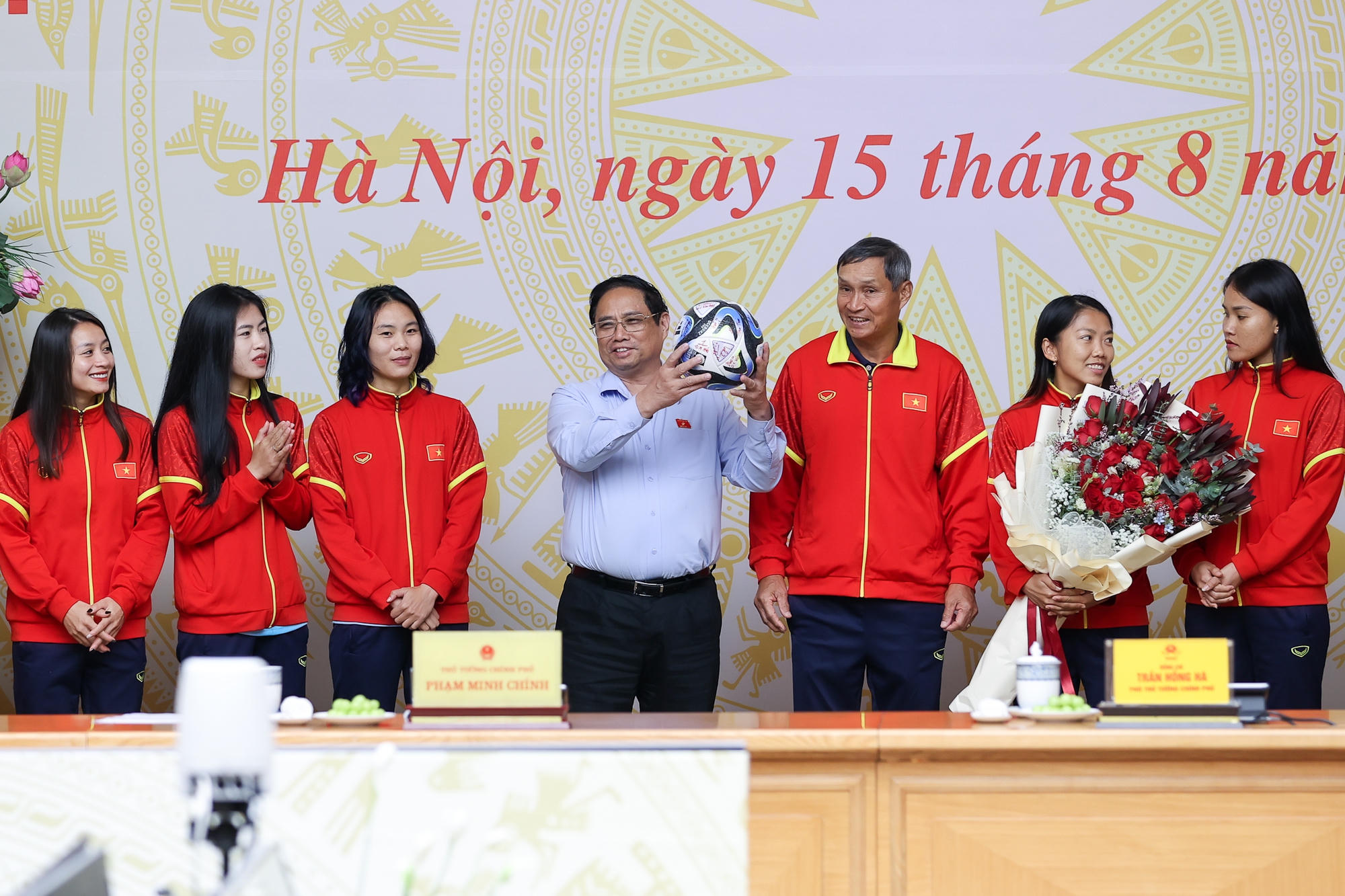 (PLVN) - Chiều 15/8, tại Trụ sở Chính phủ, Thủ tướng Phạm Minh Chính gặp mặt, biểu dương Đội tuyển Bóng đá nữ quốc gia Việt Nam tham dự Vòng chung kết Giải Bóng đá nữ thế giới 2023 (World Cup 2023).
