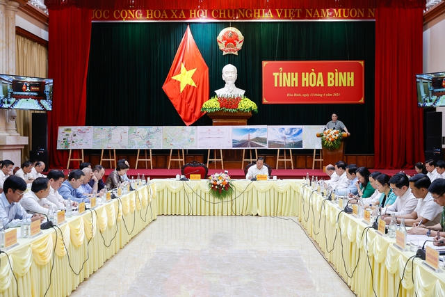 Chiều 13/4, Thủ tướng Phạm Minh Chính cùng đoàn công tác làm việc với Ban Thường vụ Tỉnh ủy Hòa Bình về kết quả thực hiện nhiệm vụ phát triển kinh tế-xã hội thời gian qua và trao đổi, thảo luận phương hướng, nhiệm vụ thời gian tới; đánh giá việc thực hiện kết luận của Thủ tướng Chính phủ Phạm Minh Chính tại buổi làm việc với lãnh đạo tỉnh Hòa Bình cuối tháng 2/2023; xem xét giải quyết một số kiến nghị của tỉnh.