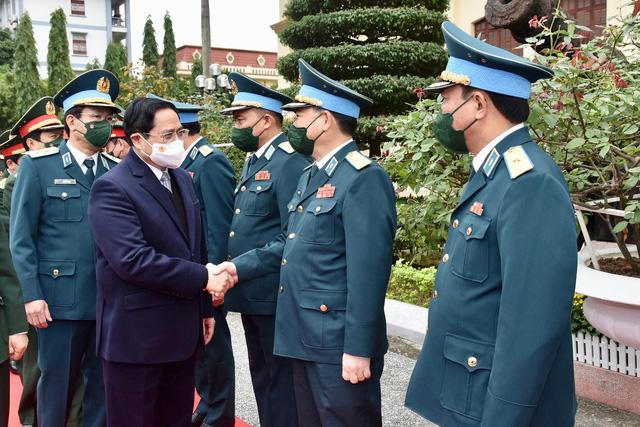 Thủ tướng Phạm Minh Chính thăm hỏi, động viên cán bộ, chiến sĩ Quân chủng Phòng không-Không quân - Ảnh: VGP/Nhật Bắc